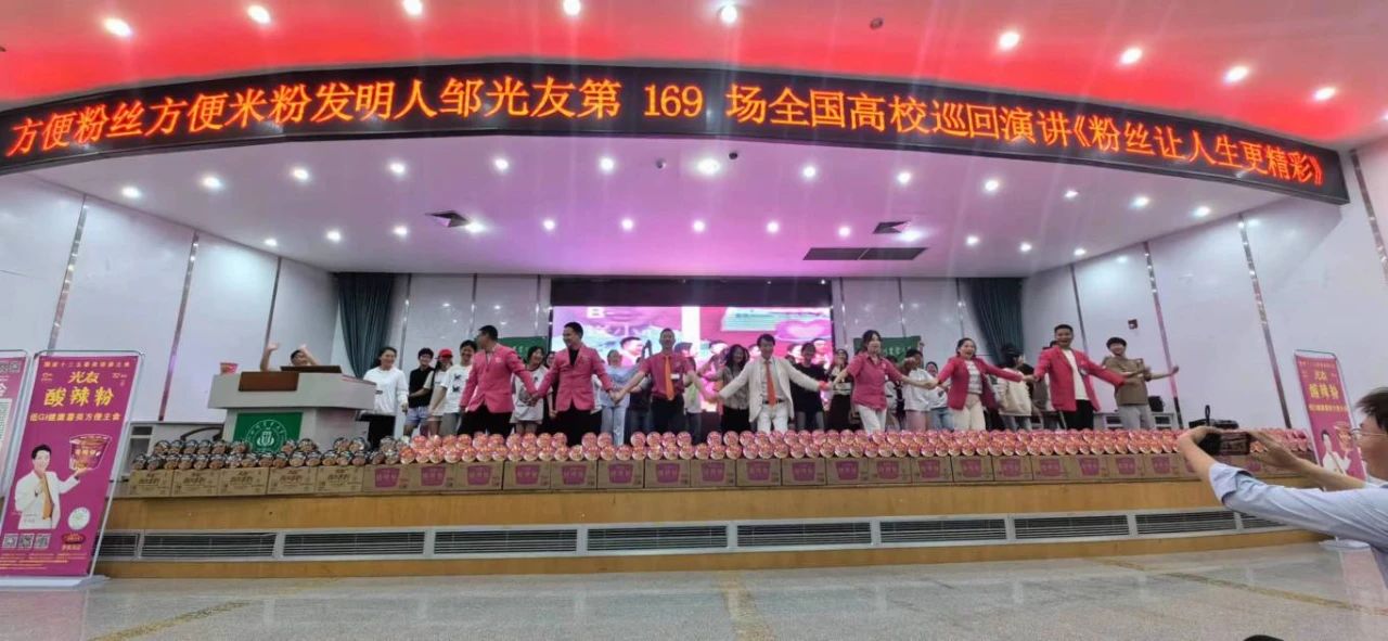 下午三時(shí)許,中國(guó)食品產(chǎn)教融合共同體副理事長(zhǎng)、中國(guó)食品科學(xué)技術(shù)學(xué)會(huì)理事、方便粉絲方便米粉發(fā)明人、方便粉絲專家、教授級(jí)高工、新中國(guó)成立60年“三農(nóng)”模范人物、光友薯業(yè)創(chuàng)始人、光友薯業(yè)董事長(zhǎng)鄒光友在四川農(nóng)業(yè)大學(xué)食品學(xué)院如期舉行全國(guó)高校巡回演講第169場(chǎng)——《粉絲讓人生更精彩》,這場(chǎng)關(guān)于創(chuàng)業(yè)的勵(lì)志演講大獲成功,近700人的禮堂現(xiàn)場(chǎng)一片歡騰,在座師生和直播間的觀眾無不受益良多。