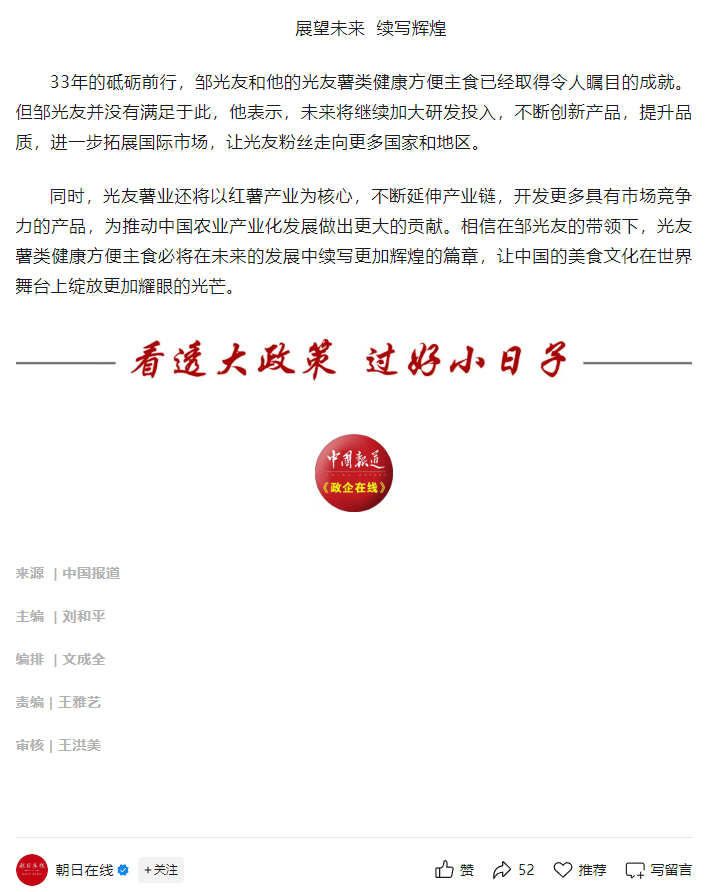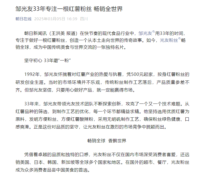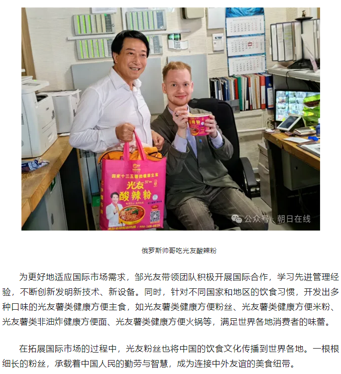 轉(zhuǎn)載朝日在線——鄒光友33年專注一根紅薯粉絲 暢銷全世界