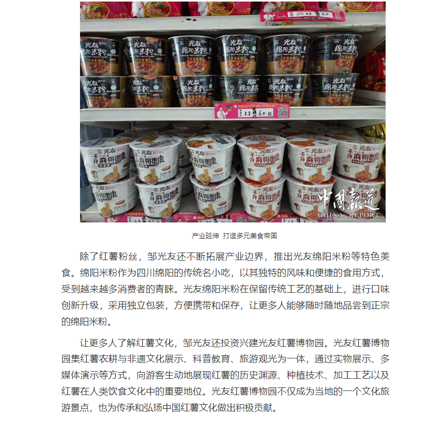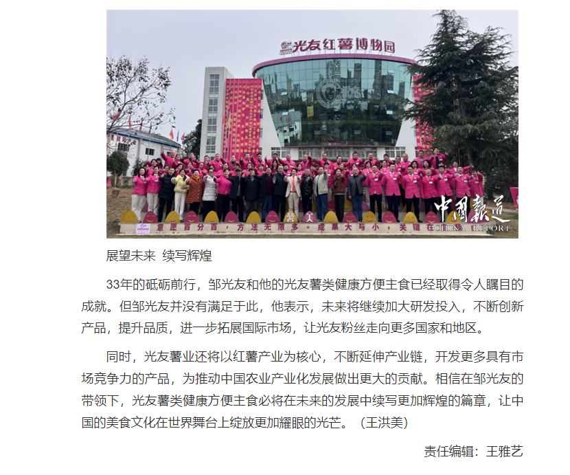 轉(zhuǎn)載中國報(bào)道網(wǎng)——鄒光友33年專注一根紅薯粉絲 暢銷全世界