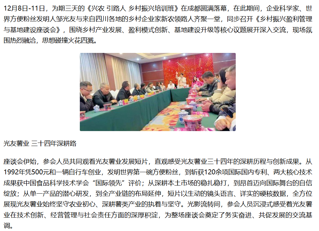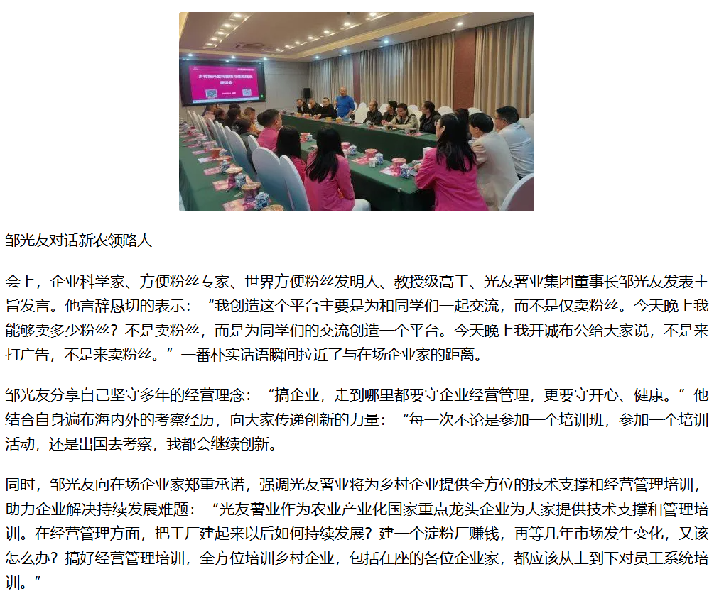 轉(zhuǎn)載鳳凰網(wǎng) -企業(yè)科學家、世界方便粉絲發(fā)明人鄒光友對話新農(nóng)領路人