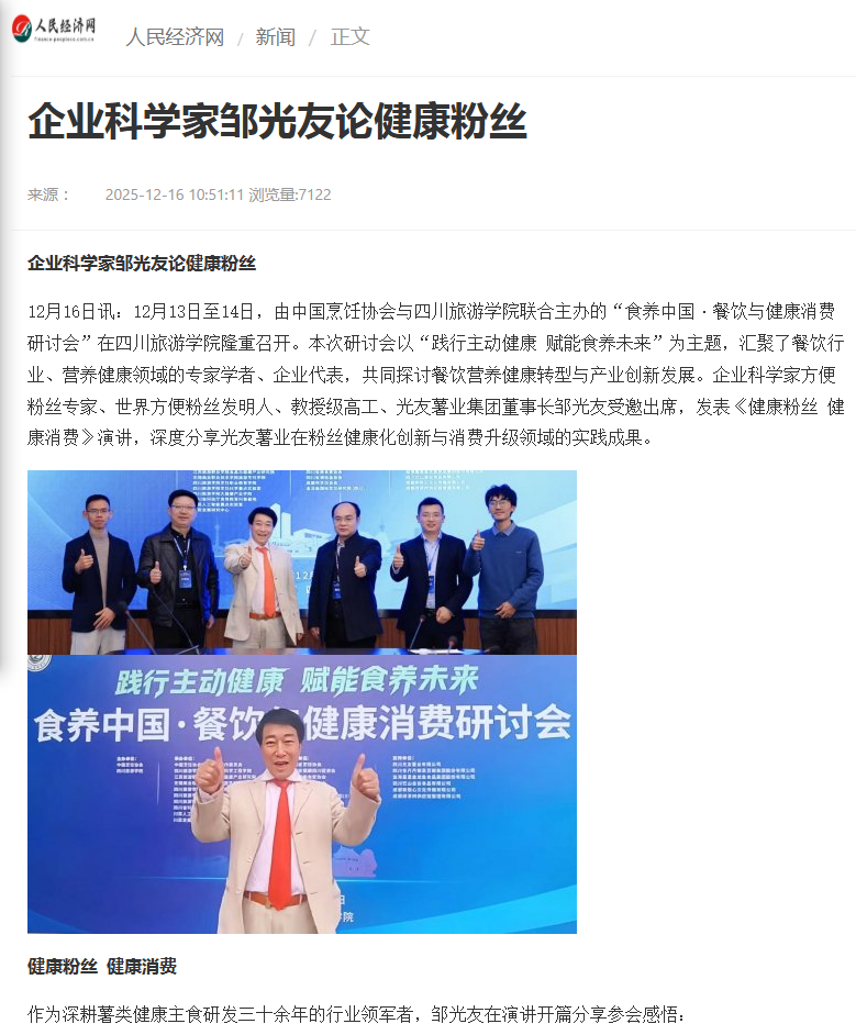 轉(zhuǎn)載人民經(jīng)濟網(wǎng)-企業(yè)科學(xué)家鄒光友論健康粉絲