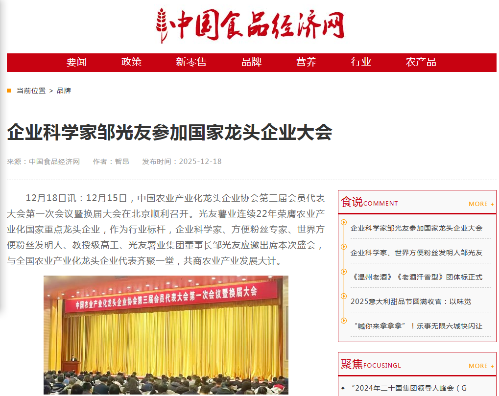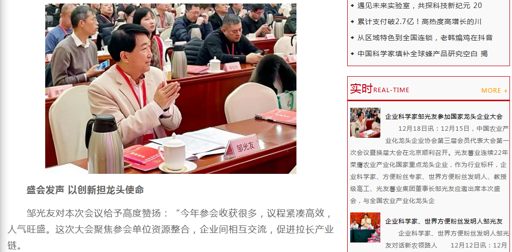轉(zhuǎn)載中國食品經(jīng)濟(jì)網(wǎng)-企業(yè)科學(xué)家鄒光友出席國家龍頭企業(yè)大會