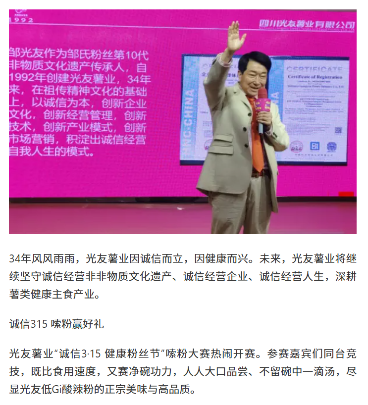 轉(zhuǎn)載網(wǎng)易新聞 誠信3·15健康粉絲節(jié)在光友紅薯博物園舉辦