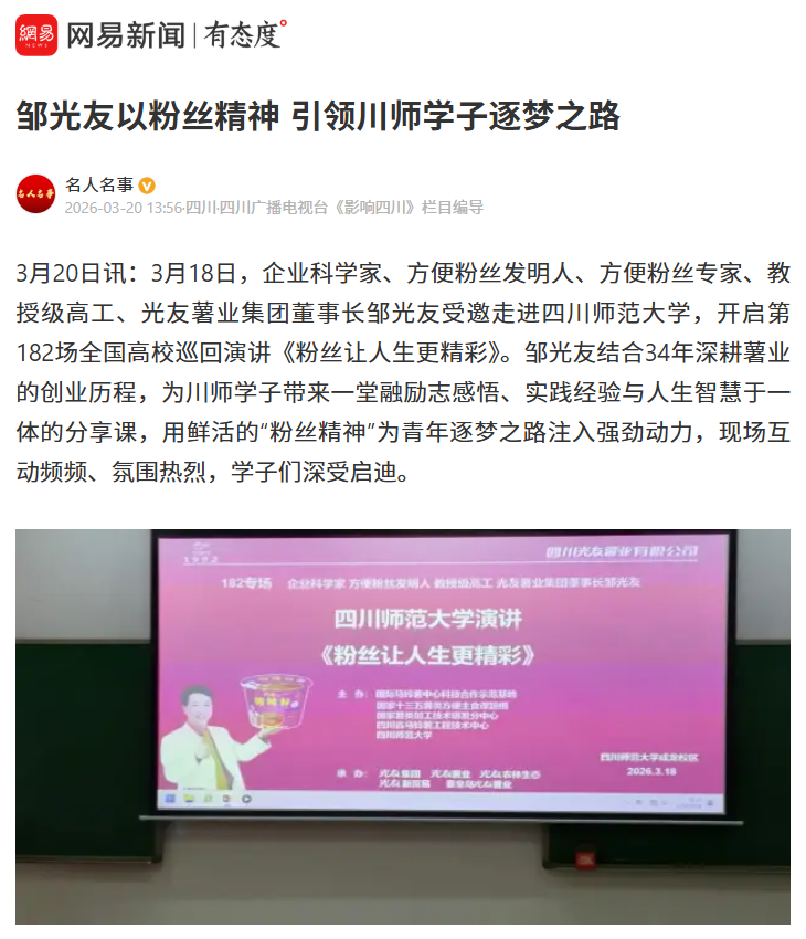 轉(zhuǎn)載網(wǎng)易新聞 鄒光友以粉絲精神 引領(lǐng)川師學(xué)子逐夢(mèng)之路