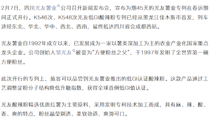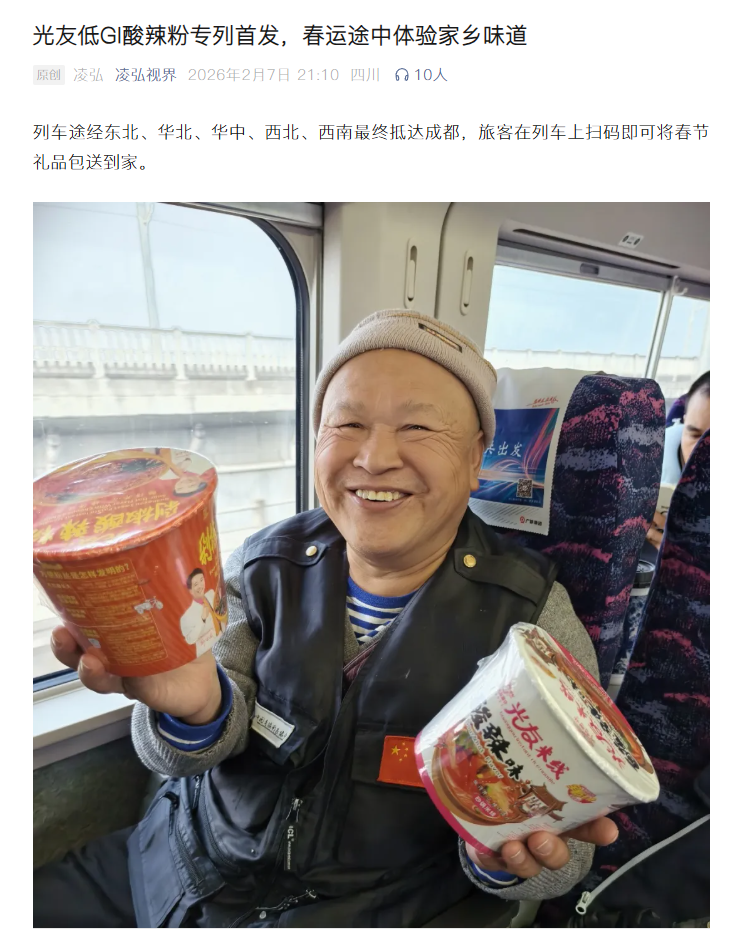 轉(zhuǎn)載凌弘視界 《光友酸辣粉專列首發(fā),春運途中體驗家鄉(xiāng)味道》